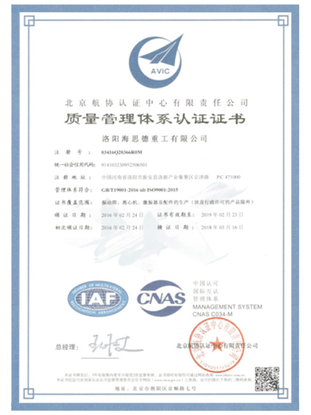 通過(guò)ISO9001質(zhì)量管理體系認(rèn)證并取得證書(shū)。